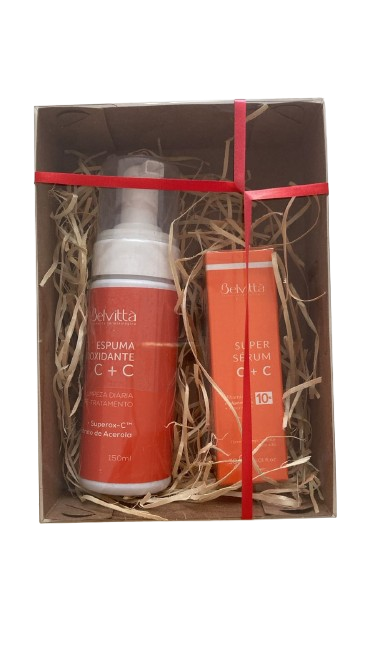 O Kit Antioxidante com Vitamina C é a escolha ideal para quem deseja uma pele mais firme, luminosa e protegida contra os sinais do tempo. Composto pelo sabonete espuma de limpeza facial pré-tratamento com Superox-C™ e extrato de acerola e pelo poderoso Super Sérum C + C, este kit oferece um cuidado diário completo com alta concentração de vitamina C. A espuma limpa delicadamente enquanto proporciona ação antioxidante, hidratante e clareadora, preparando a pele com um aroma cítrico sofisticado e refrescante. Em seguida, o sérum potencializa os resultados com duas fontes de vitamina C altamente estáveis, promovendo firmeza, redução de rugas e linhas de expressão, além de uniformizar o tom da pele e deixá-la radiante. Um verdadeiro tratamento antienvelhecimento que protege, rejuvenesce e realça a beleza natural da sua pele desde o primeiro uso.